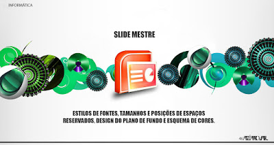 No Power Point o slide mestre é um elemento do modelo de design que armazena informações sobre o modelo, inclusive estilos de fontes, tamanhos e posições de espaços reservados, design do plano de fundo e esquema de cores.